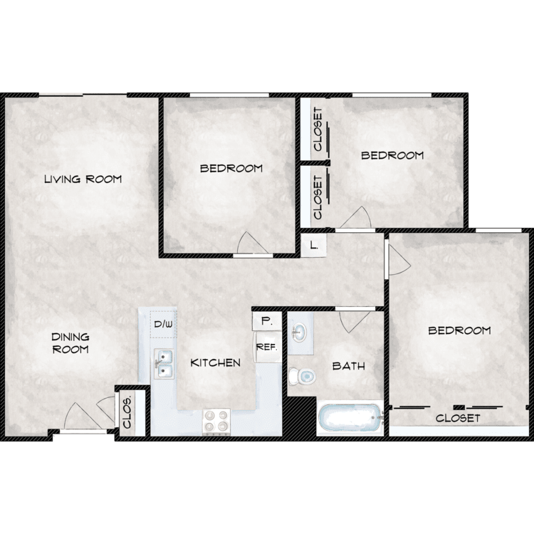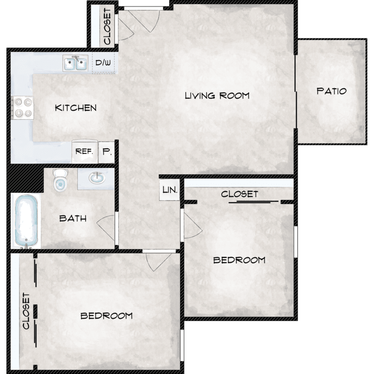 We offer a wide range of floor plans, including studios, one, two, and three-bedroom apartments for rent. All of our kitchens feature a pantry and a dishwasher. Select homes come with a balcony or patio, as well as walk-in closets, providing ample storage space. There is something for everyone at Belmar Apartments.